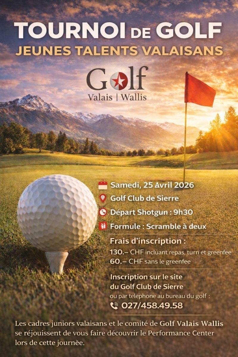 Samedi 25 avril, soutenez nos jeunes talents valaisans en participant à une belle journée au Golf-Club de Sierre !