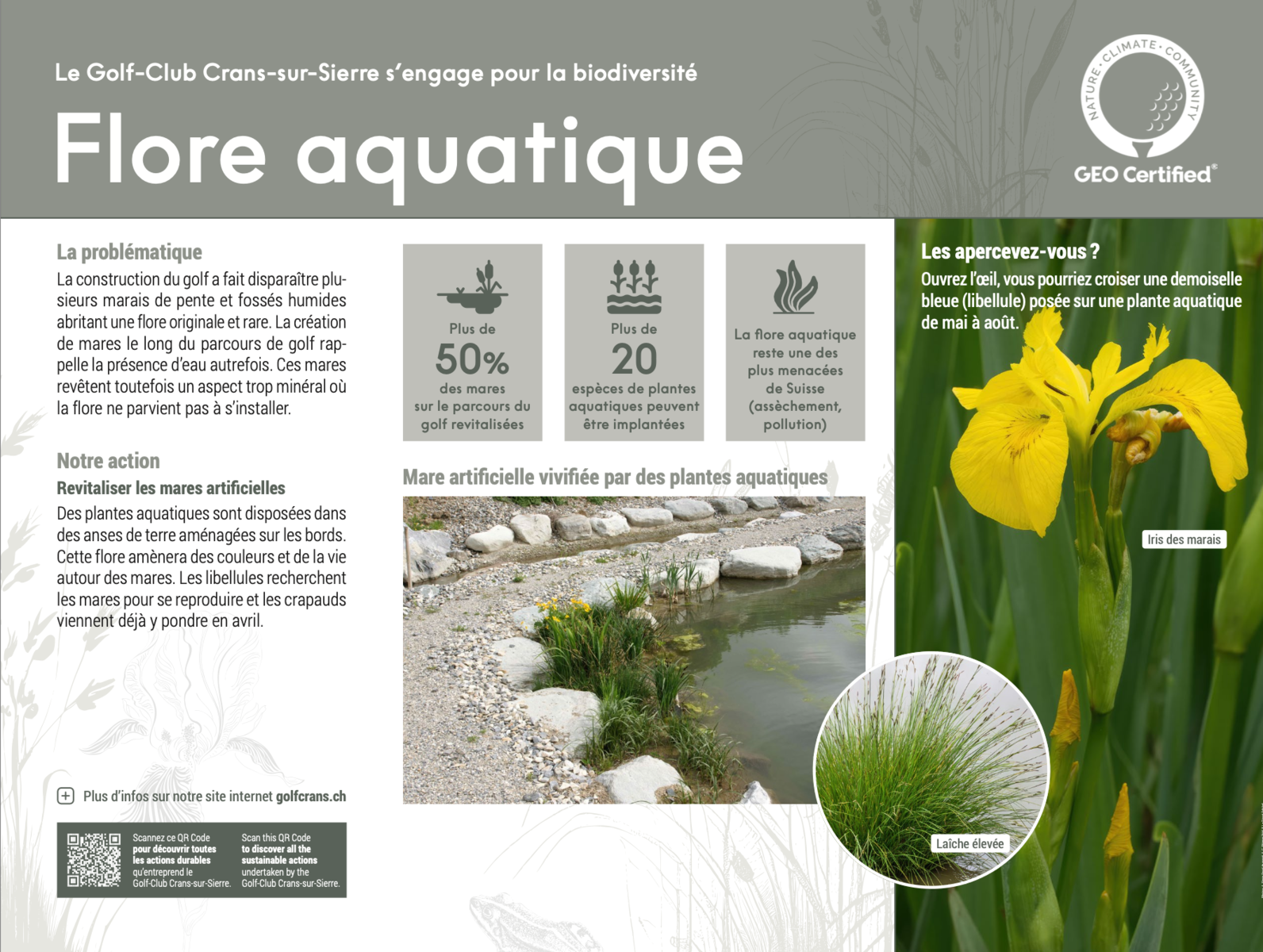 Obstacles pour les joueurs, les ruisseaux et points d’eau agrémentent nos parcours de golf. Ils pimentent le jeu et sont également de véritables atouts pour la biodiversité. Quand vous longerez les mares artificielles, laissez vous distraire quelques instants par la beauté des plantes qui s’y développent.
